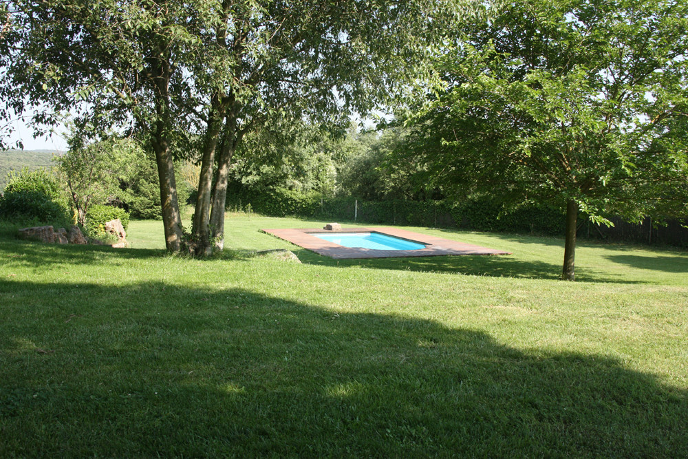 L'exterior de la casa rural disposa d'un ampli jardí, un dels majors atractius de la casa rural. Piscina, barbacoa, parc per als nens són alguns dels principals atractius de la casa.