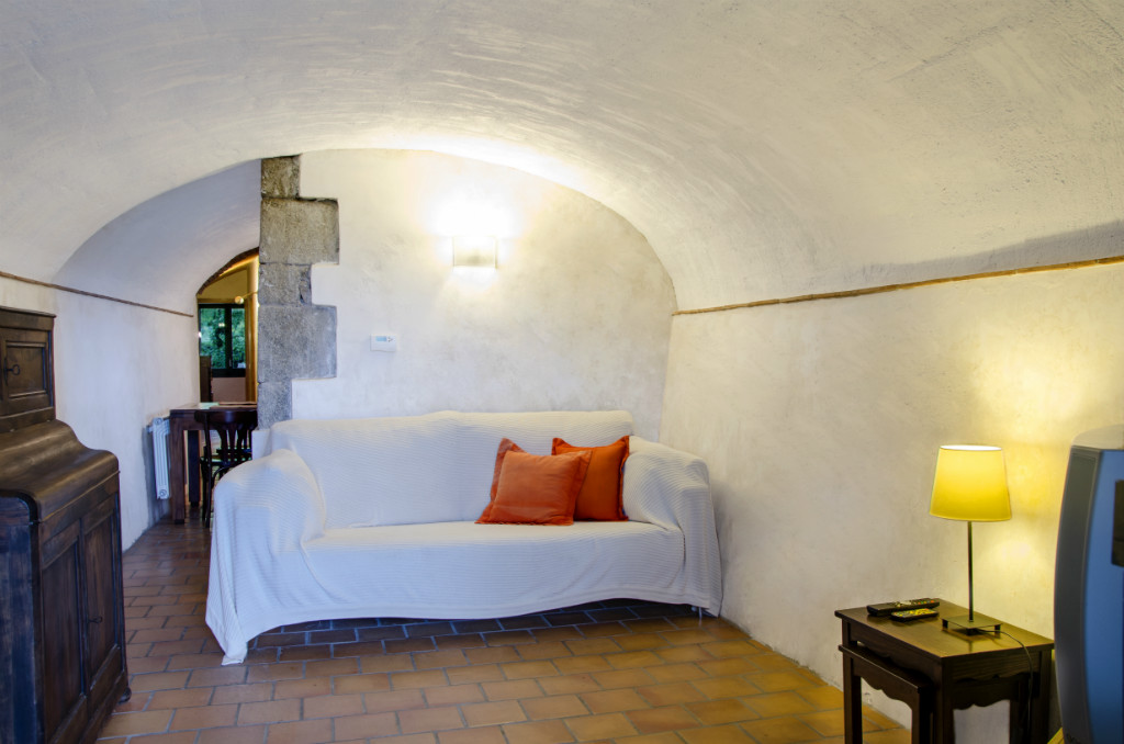Apartament rural distribuït en un sol nivell, pensat per a 4 persones màxim, en un entorn envoltat de pastures i un paisatge propi de les Gavarres.Amb una personalitat autèntica que la fa única. Cuina totalment equipada amb nevera, rentadora, cuina a gas i taulell. Posseeix un menjador i una sala d'estar amb TV.