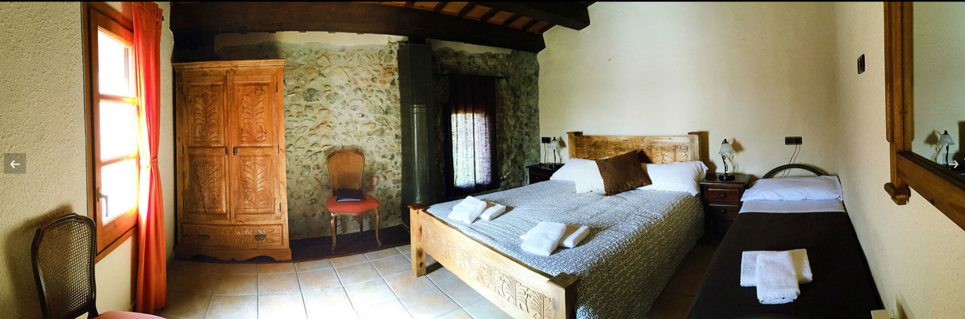 Disposa de 3 àmplies i lluminoses habitacions (una de 5 places en dos espais i 2 triples amb llit de matrimoni i llit individual). Destaquen els elegants sostres de fusta.
