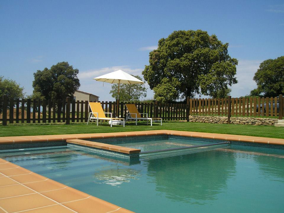 A l´exterior de la casa, destaca el gran i ample prat, un espai perfecte per gaudir dels amics o de la família envoltat de boscos i unes vistes espectaculars. Aquí trobaràs la barbacoa amb taules i cadires, a banda de la gran piscina de la casa.