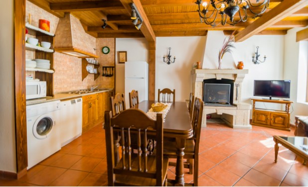 La cocina de la casa está completamente equipada con todos los electrodomésticos esenciales como la lavadora o placas de vitrocerámica para hacer la estancia más cómoda para los huéspedes y hacerlos sentir como en casa.